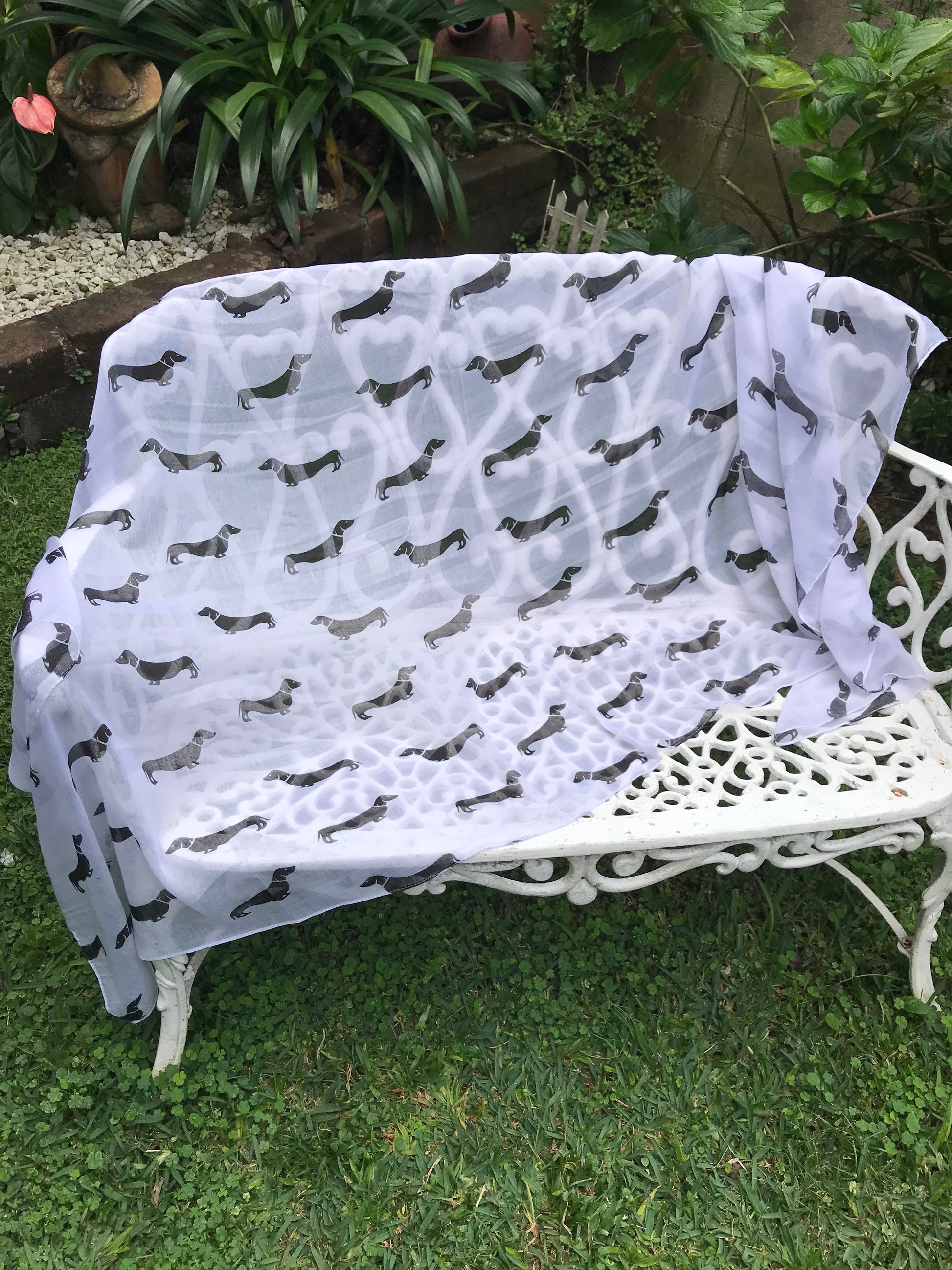 Bufanda larga con estampado de perros salchicha. Mezcla de seda, muy suave y delicada. Unitalla y unisex. Excelente regalo de Navidad, amigo secreto, amigo invisible, regalo de cumpleaños, regalo día de la amistad y el amor, Día de la Madre, Día del Padre.
