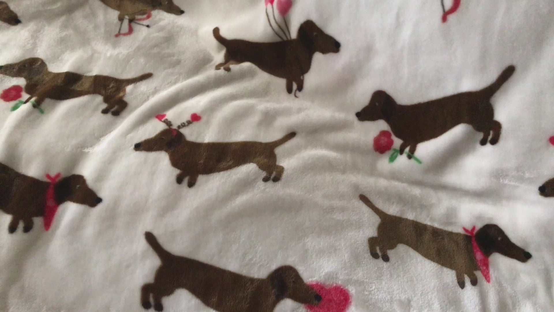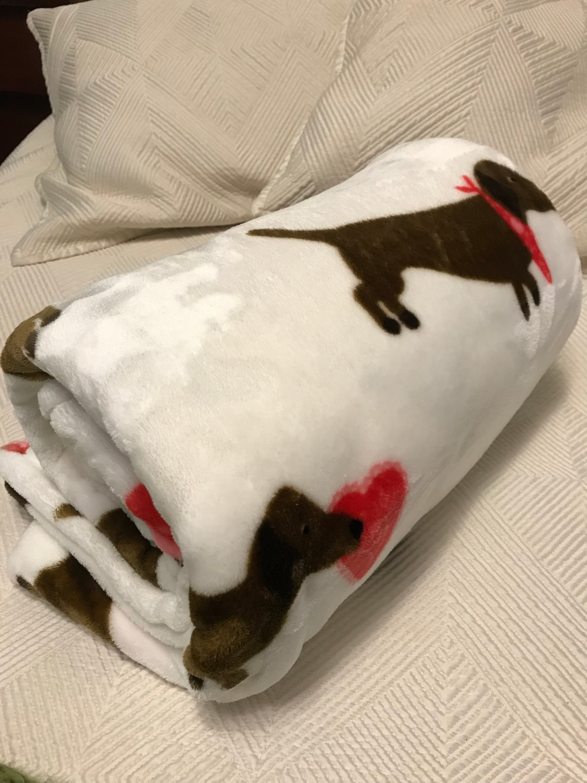 Esta es una muy confortable cobija con estampado de perros salchicha por un lado, que se ven también más tenues por el otro lado. Material: 100% polyester, muy suave y agradable para su uso en lugares o días fríos. Esta cobija increíblemente deliciosa, decorará además de manera muy especial su casa, ya sea puesta sobre el sofá de la sala, en la sala de TV o en la habitación sobre la cama. Apto para una cama twin, full o queen (en este caso sin exceso en los costados).