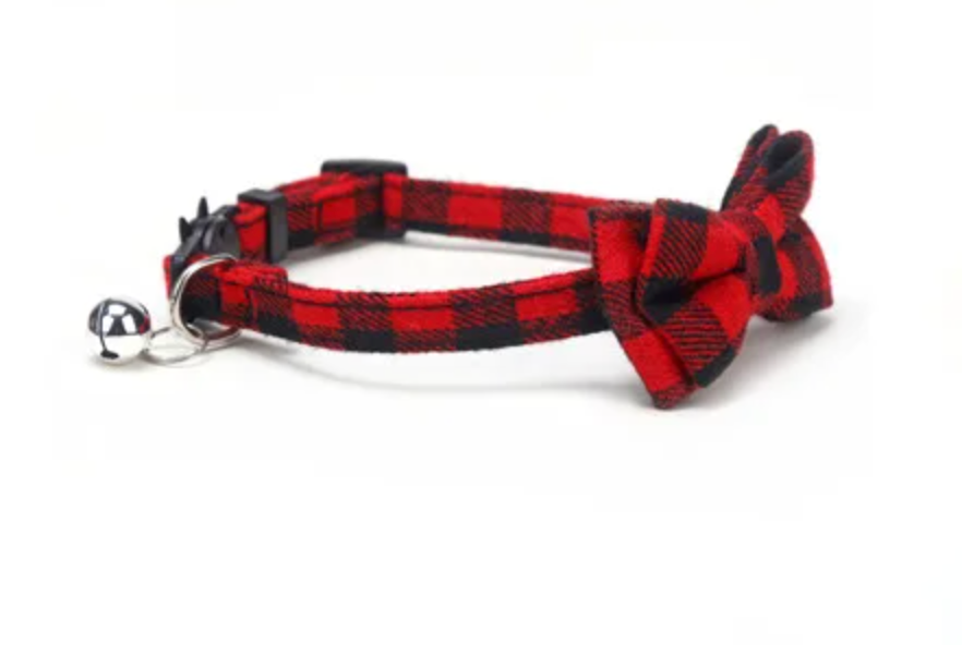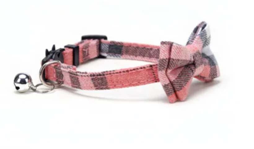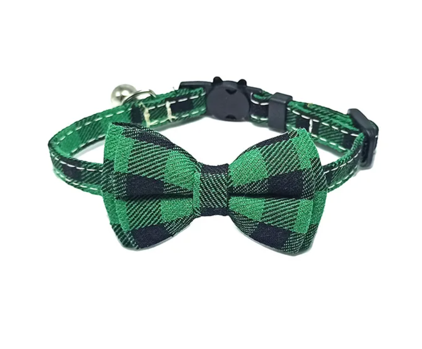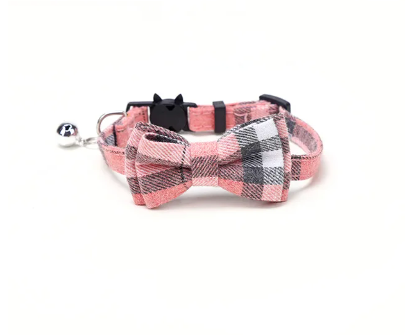 Collar ajustable con corbatín para gato o perros muy pequeños. El collar se puede usar sin el corbatín. Son 2 piezas independientes que se pueden usar juntas. Incluye 2 piezas (collar+corbatín). Material algodón, con cierre y hebillas de ajuste plásticos.