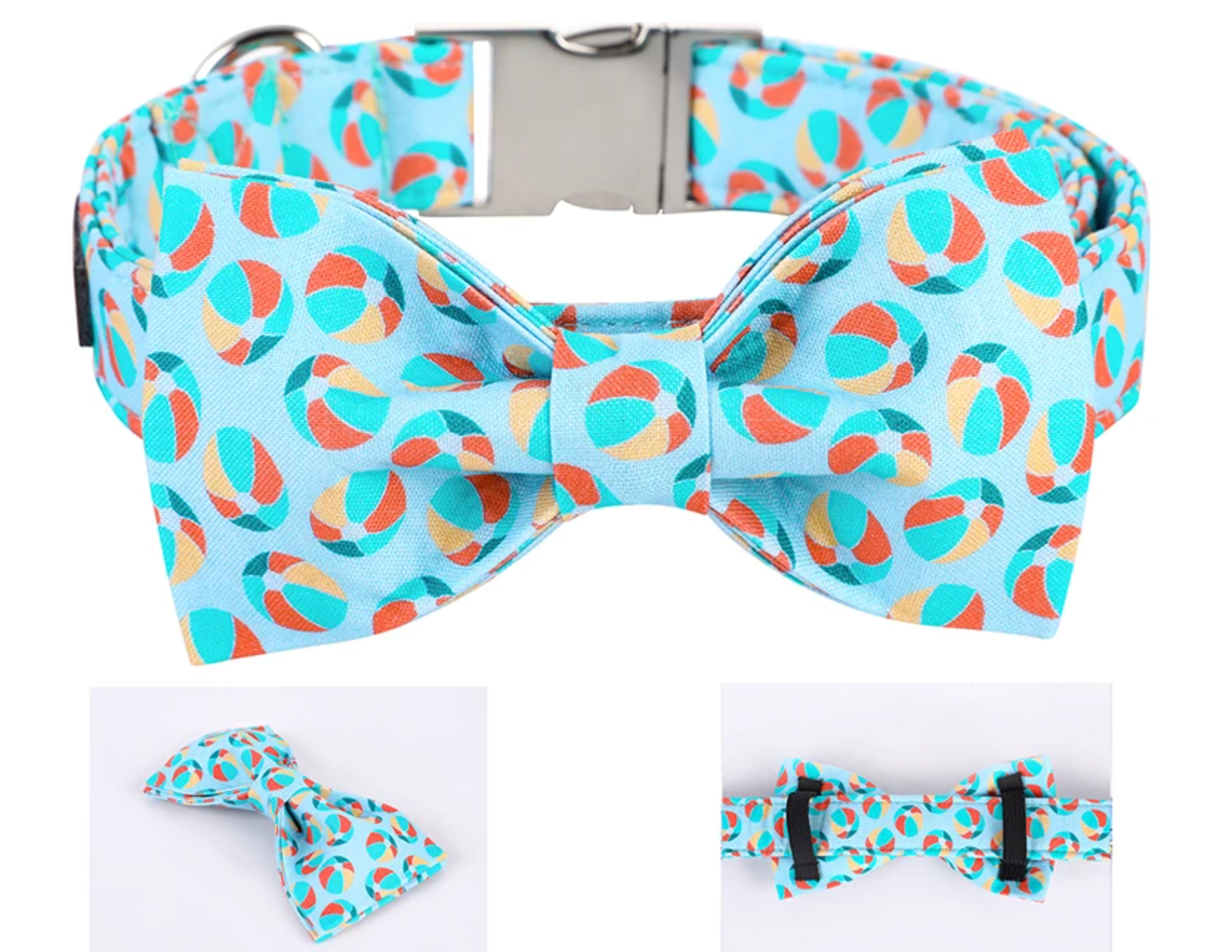 Este lindo collar 2 en 1 con corbatín está hecho 100% en algodón, es ajustable y tiene hebilla plateada. Se puede usar sin el corbatín. Debe lavarse a mano.
