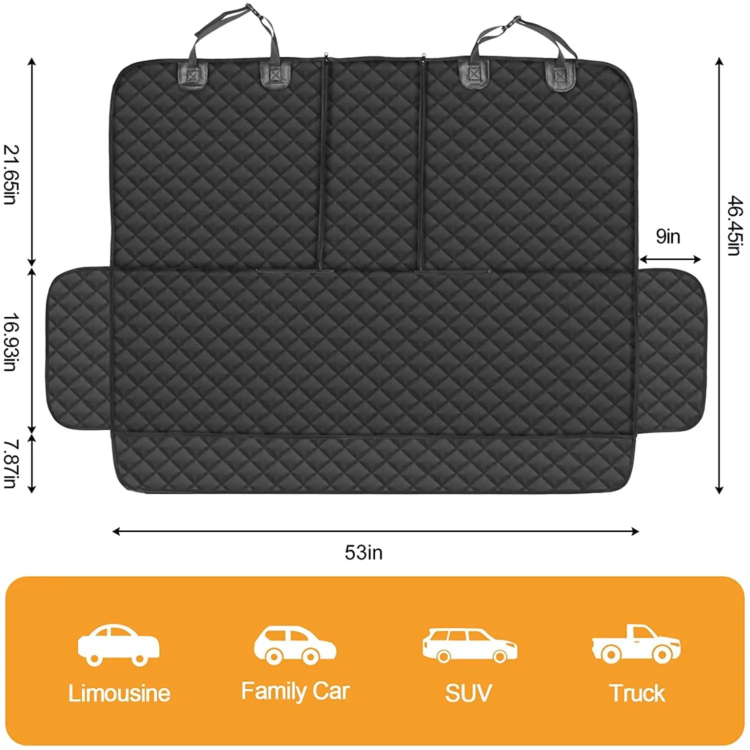 Este protector para asiento trasero te brindará muchos beneficios, no sólo es impermeable para proteger el asiento de líquidos y caída de pelo de tu mascota, sino que por los orificios especiales que tiene el cobertor, te permite asegurar el cinturón de seguridad desde la pechera de la mascota hasta su respectivo cierre en el vehículo. Material nylon. Además el cubreasiento tiene un zipper en el respaldar que te permite bajar el reposabrazos central en los automóviles que lo tienen. Este cobertor no incluye el cinturón de seguridad, pero lo podés adquirir en MyPet ingresando en este link: www.MyPet.cr/