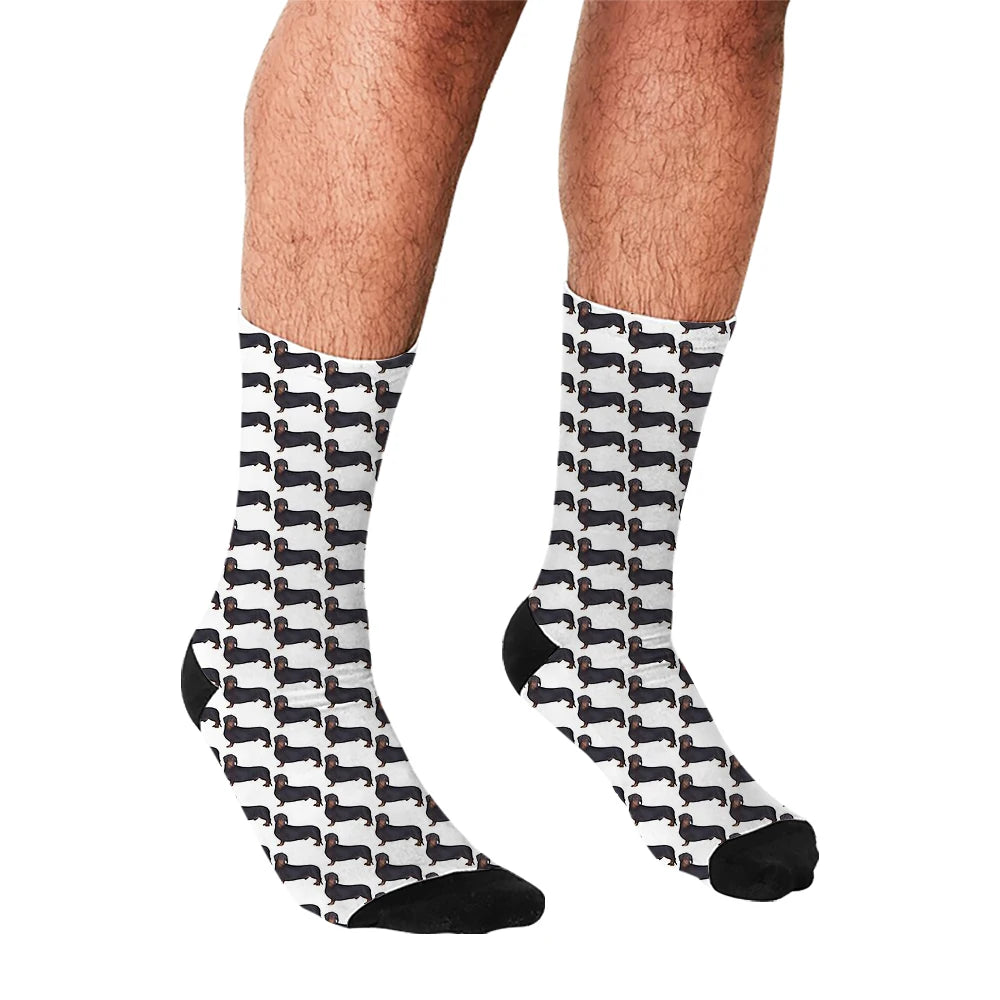 Medias divertidas con estampado de perro salchicha, material polyester, spandex y algodón. Las figuras están impresas sobre la tela sin expandir, por lo que se recomienda para piernas delgadas, ya que conforme se introduce la pierna en la media y la tela se estira, esta pierde la firmeza del color. Excelente regalo de Navidad, amigo secreto, amigo invisible, regalo de cumpleaños, regalo día de la amistad y el amor, Día de la Madre, Día del Padre.