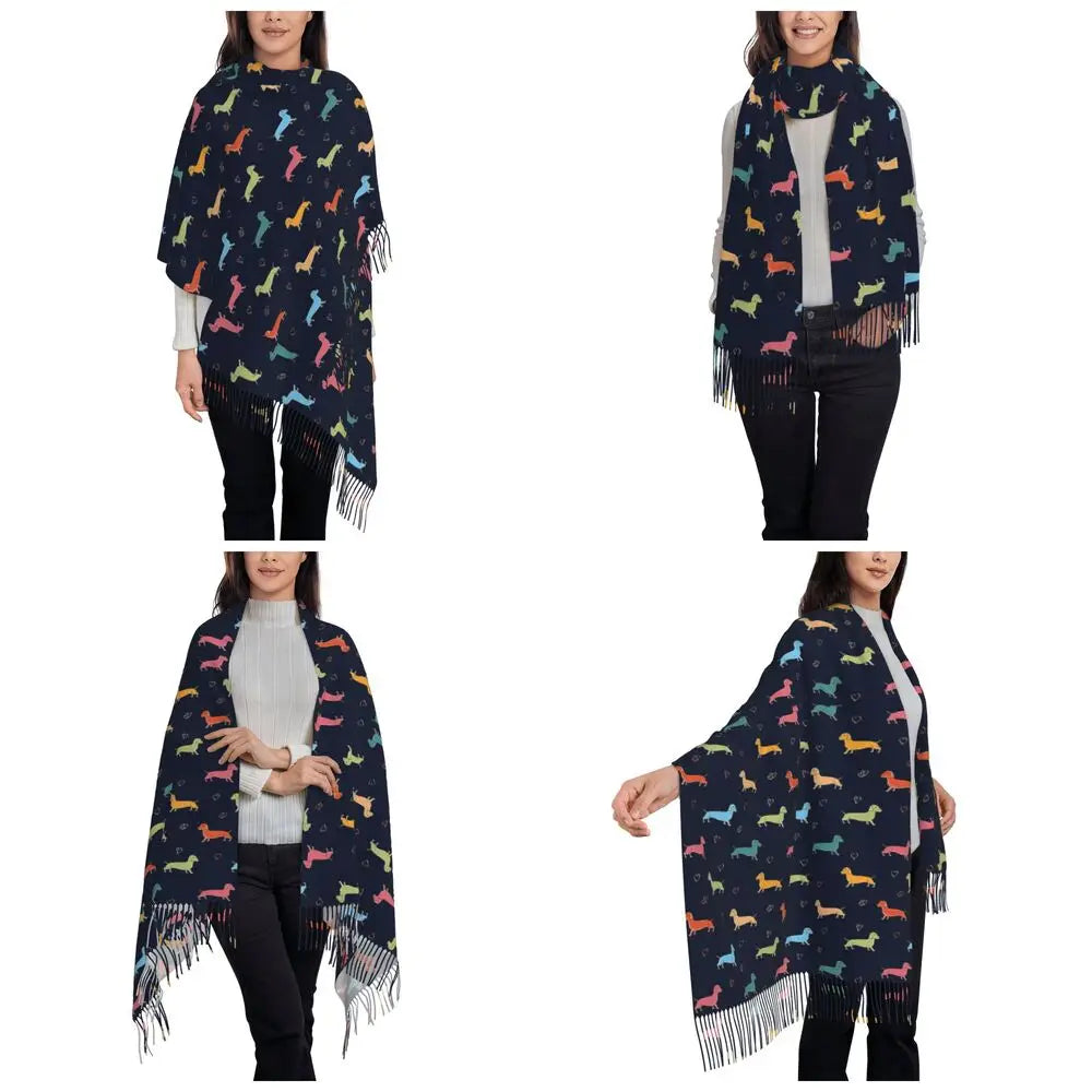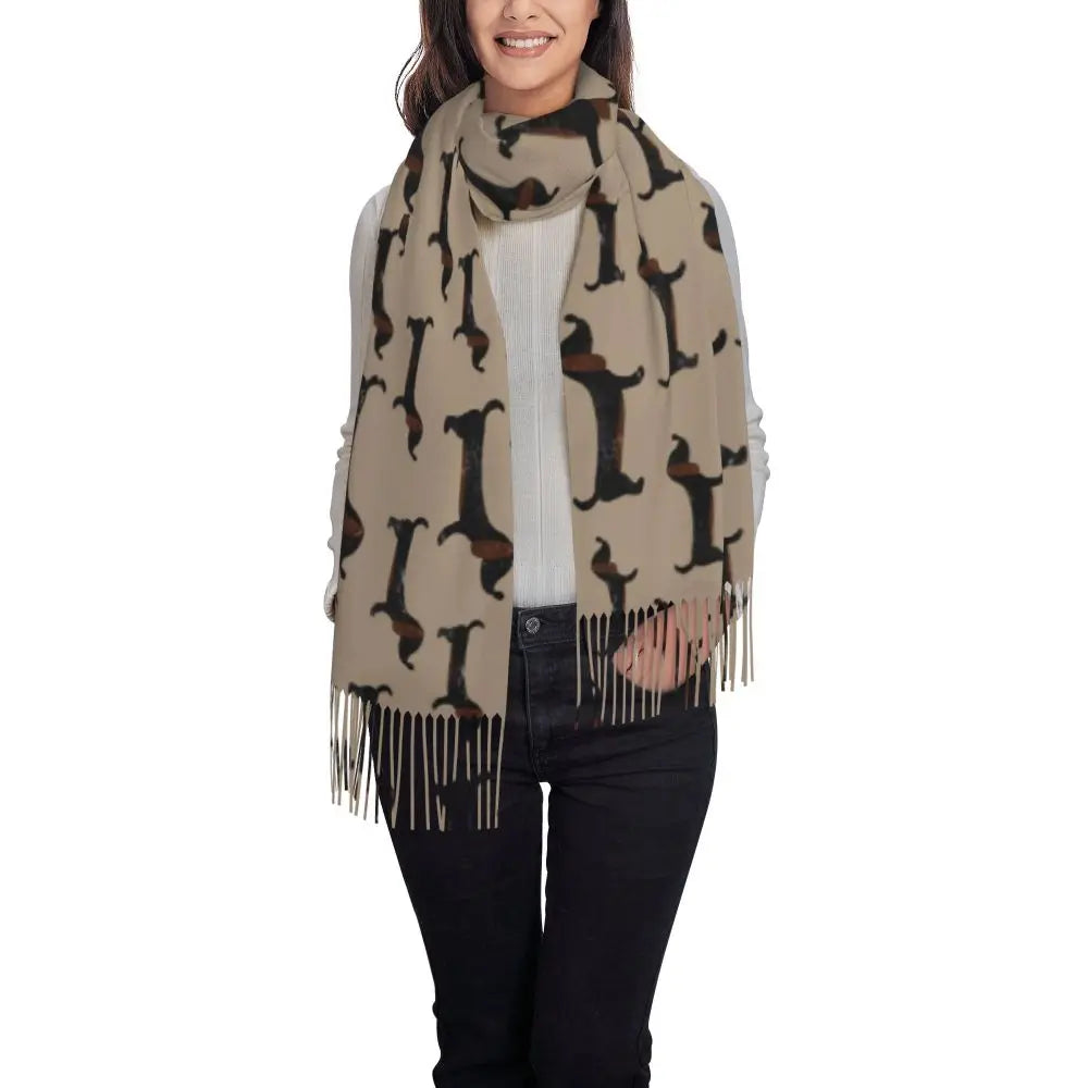 Versátiles y hermosas pashminas largas con estampados de perros salchicha, un acento perfecto para tu original estilo. Funcionan como abrigo o como accesorio al cuello, y se pueden lucir en sinnúmero de posiciones. Detalle de flecos en los extremos. Material polyester, suaves, muy agradables. Excelente regalo de Navidad, amigo secreto, amigo invisible, regalo de cumpleaños, regalo día de la amistad y el amor, Día de la Madre, Día del Padre.
