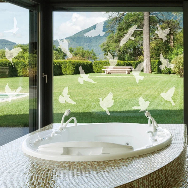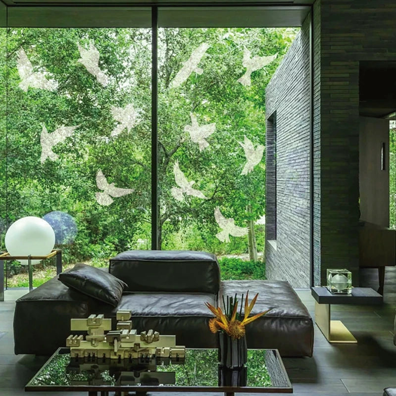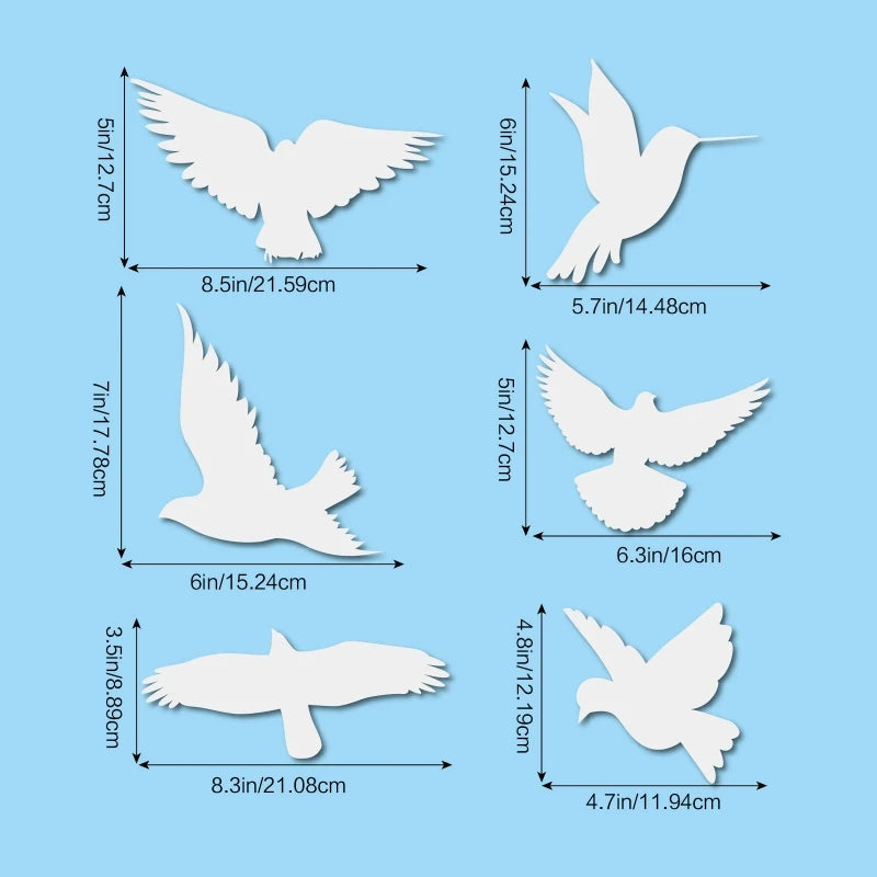 Adhesivos de ventana con forma de pájaros para reducir la posibilidad de colisión de las aves en las ventanas, a la vez que les das un toque especial. También sirven como decoración en las paredes. Window anti-collision bird alert. Para saber si requiere adhesivos negros o blancos, debe considerar cuál tono resaltará más entre los reflejos de sus ventanas, para que los adhesivos sean mejor percibidos por los pájaros.