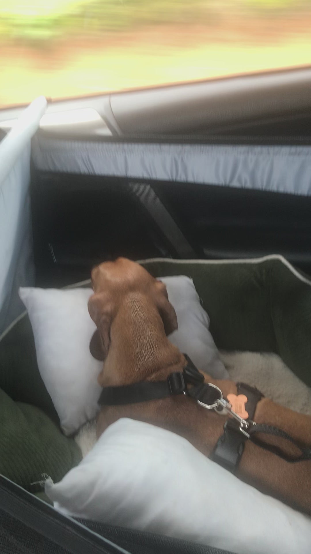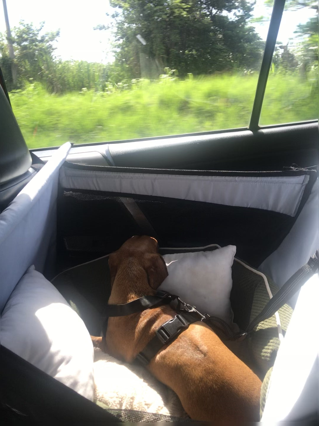 Te presentamos esta útil y segura silla de seguridad para mascota, funciona para perros pequeños, medianos y grandes de hasta 50 libras, y es ideal para perros Dachshund (perros salchicha), ya que es amplia y les permite por su longitud viajar cómodos. De hecho esta amplitud de asiento de seguridad permite introducir su camita y/o almohadas para acuñarlo y que viaje bien cómodo. Esta silla de seguridad es impermeable, protege el asiento de líquidos y caída de pelo de la mascota. La silla se sujeta entre la cabecera del asiento de atrás y la cabecera del asiento del copiloto, y adicionalmente cuenta con un cordón de seguridad que sujeta la base de la silla al asiento trasero. Incluye un cinturón de seguridad, el cual es antilatigazo, que protege a tu mascota de movimientos repentinos y bruscos; este permite asegurar la pechera de la mascota con el reposa cabeza del asiento trasero (cabecera), y así además se cumple con la ley de tránsito para evitar el parte!