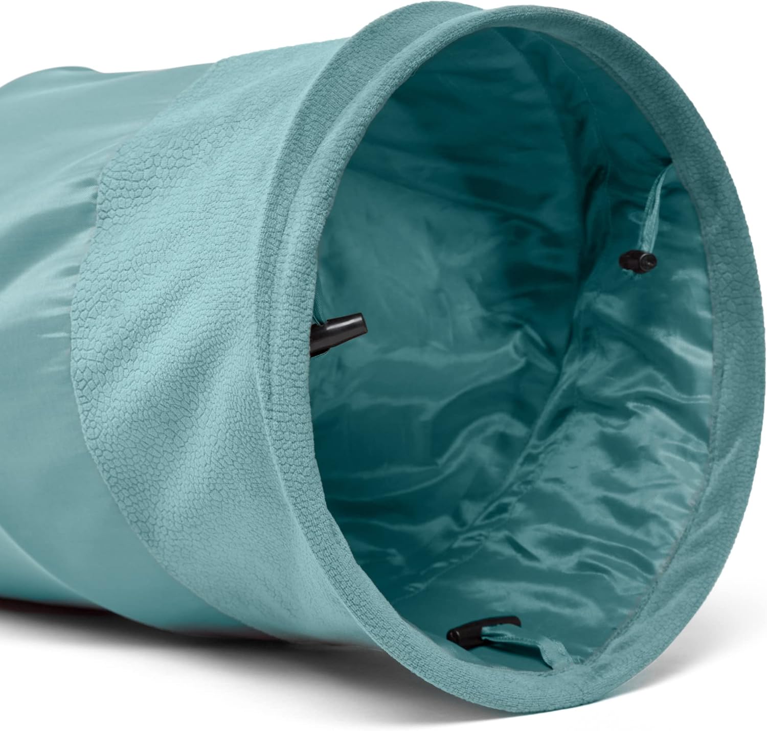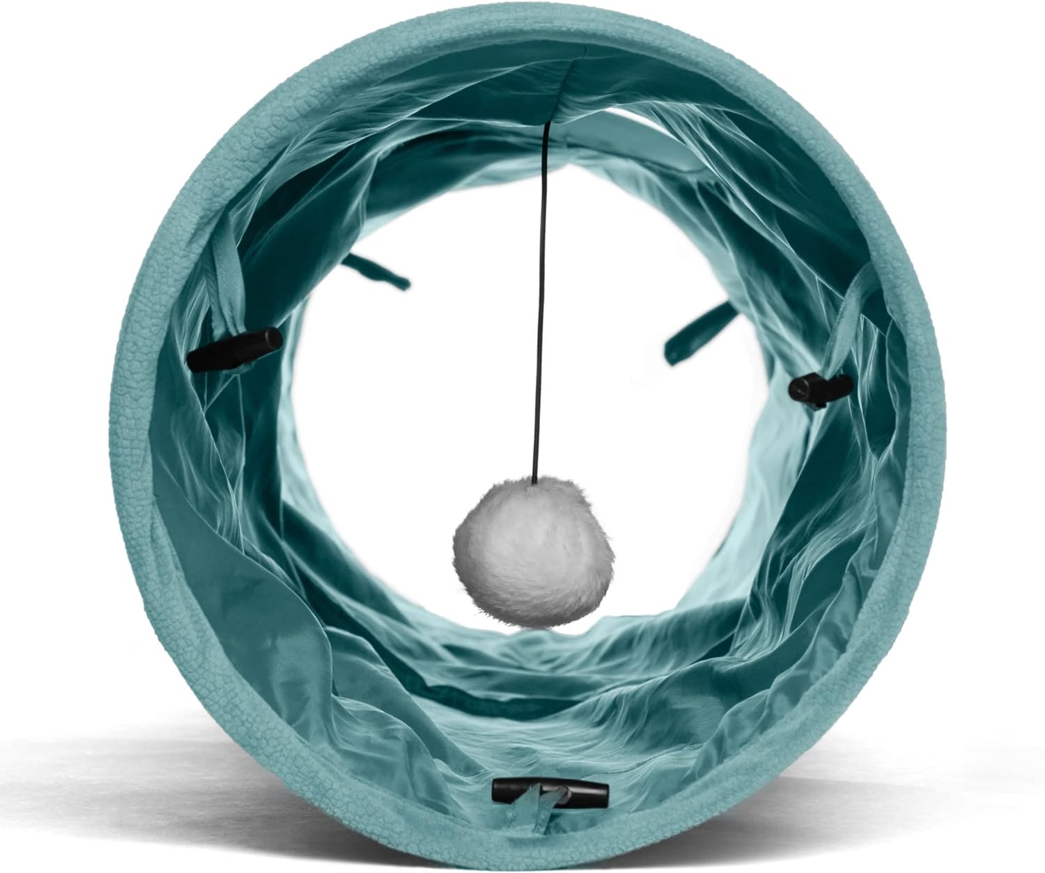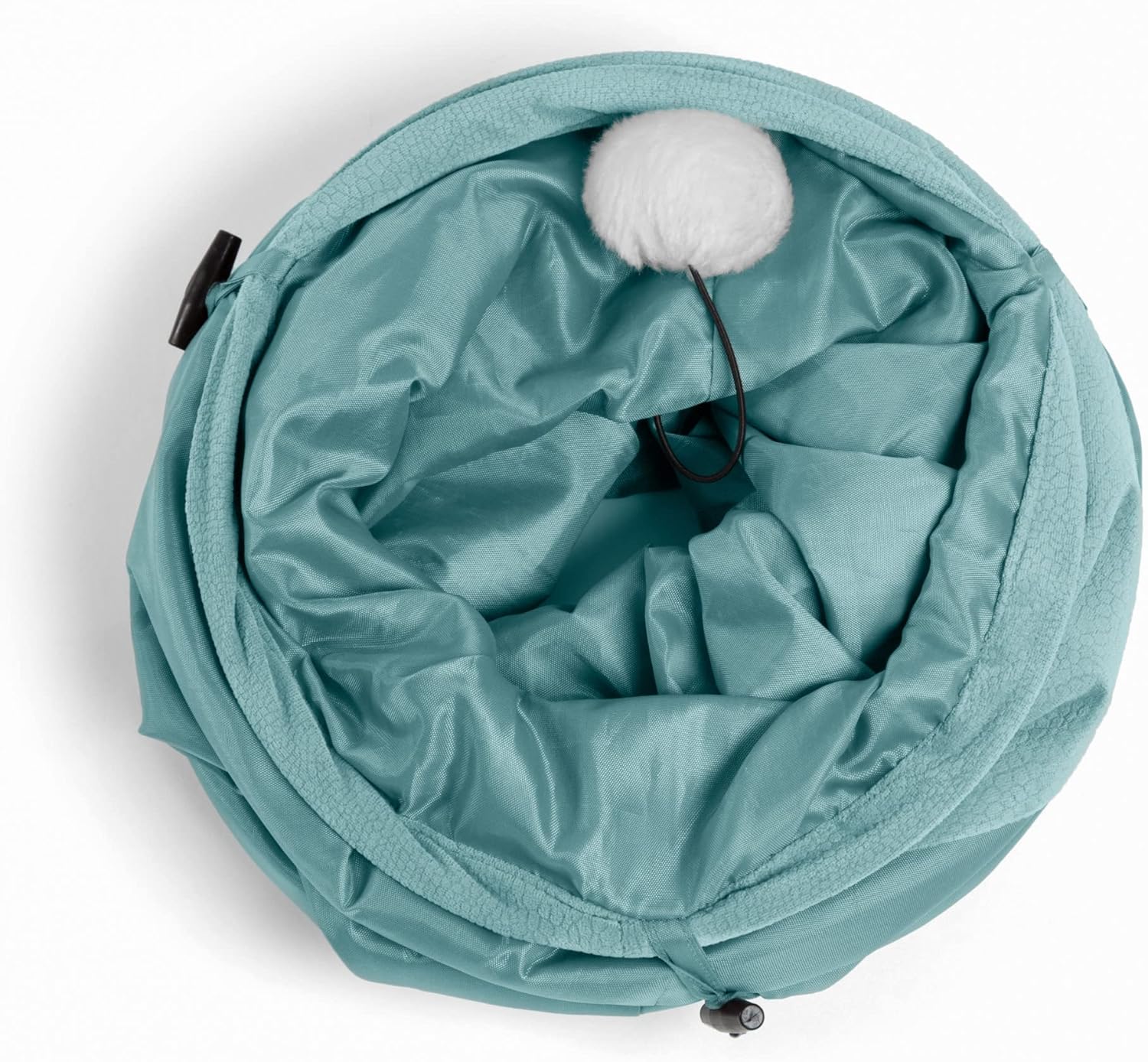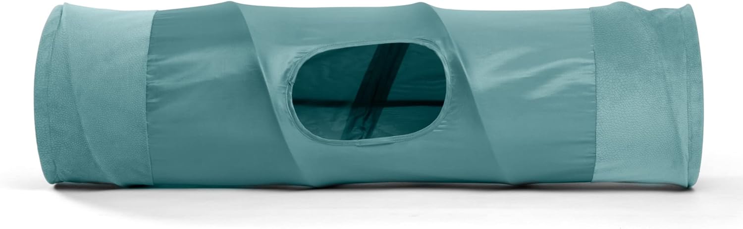 Para dormir, esconderse y jugar, a tu gato le encantará este divertido túnel! Tiene una bolita colgante para que juegue, es fácil de doblar para guardar, está hecho de material microfibra y de resistente nylon oxford, liviano, portátil. Suave para descansar y resistente para que jueguen varios gatos. Como elemento interactivo adicional, el forro interior contiene un papel arrugado que suena, lo cual atrae mucho la atención del gato. Juguete para gato, 1 agujero en cada lado y 1 arriba (3 agujeros en total). Este artículo tiene color agradable para que contraste con la decoración de tu hogar.